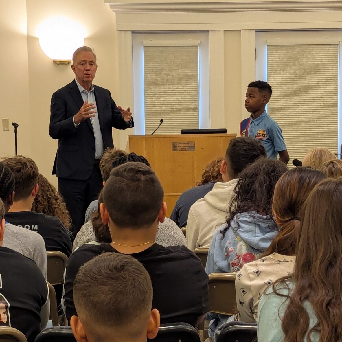 Ned Lamont visits Kid Governor Keudy Martinez at his school to discuss Keudy’s “Speaking Up for Safe & Happy Schools” platform and to answer student questions about bullying, government, and civic engagement.