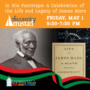(Hartford, CT) — Discovering Amistad will celebrate the life and legacy of an “unsung” American hero – by hosting In His Footsteps: A Celebration of the Life and Legacy of James Mars at Connecticut’s Old State House on Friday, May 1, from 5:30 to 7:30 p.m. Hear passages about his experiences and the lived accounts of his descendants from his personal memoir, self-published in 1869. In place of an admission fee, we kindly invite guests to consider a suggested donation of $10. Register here: https://da-james-mars.eventbrite.com.